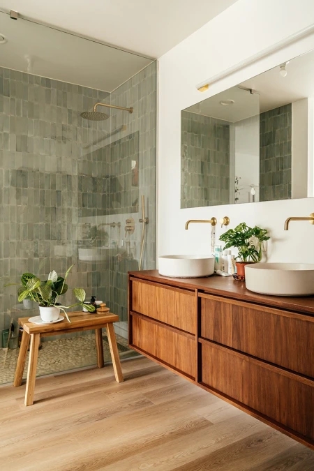 L'effetto legno in bagno: troppo bello per essere vero? Non per le doghe in vinile. Con Parquetvinyl puoi ottenere l'effetto parquet in bagno senza preoccuparti che le doghe si deformino o di doverle oliare ogni anno.